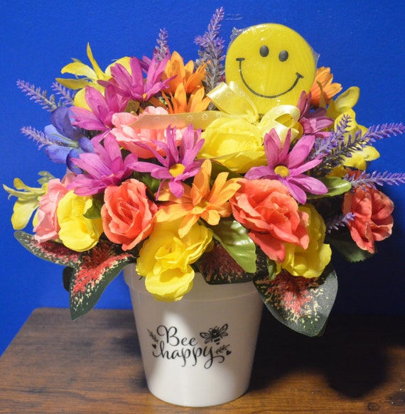 Happy Face Bouquet Artificial Flower Arrangement Centerpiece Etsy